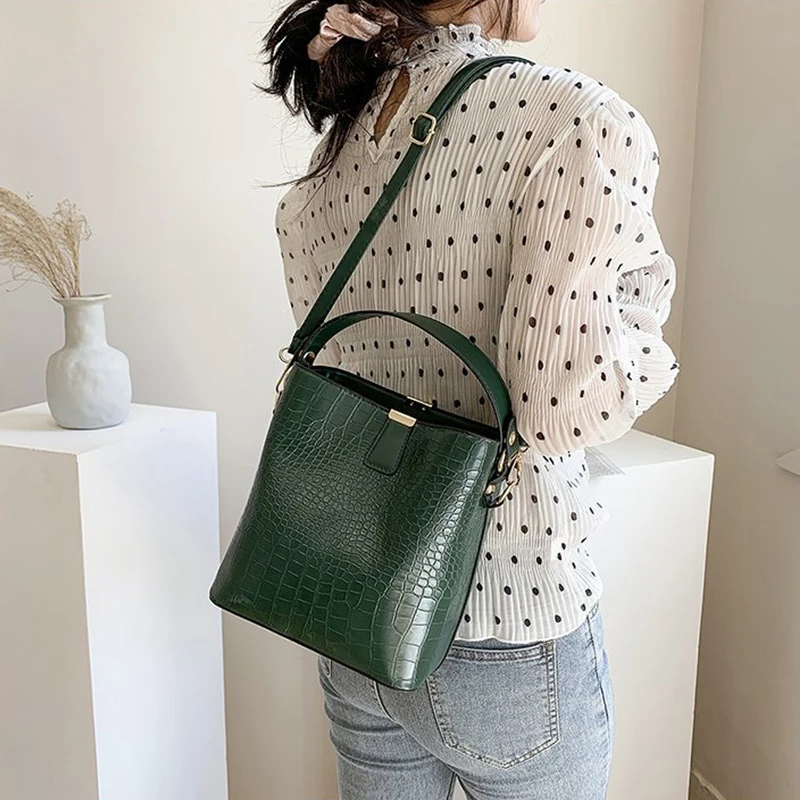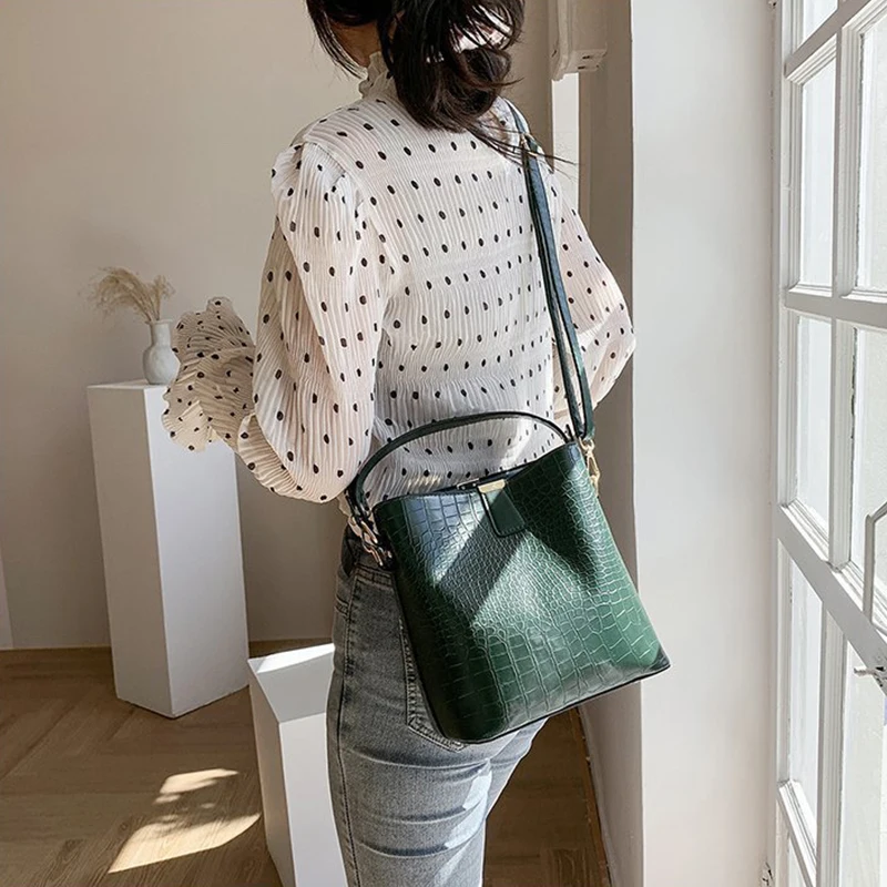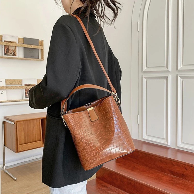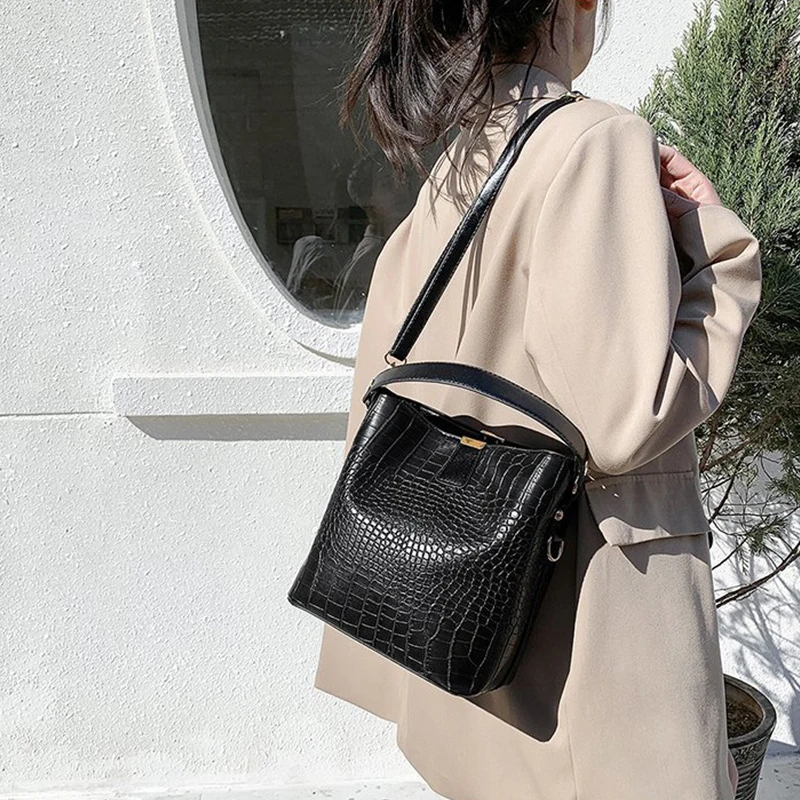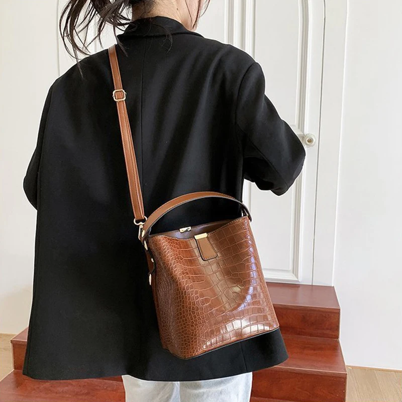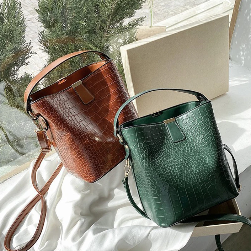 Vintage Alligator Leather Handbag Shoulder Crossbody Bags Fashion Female Bucket Bag Large Capacity Women Tote Bag