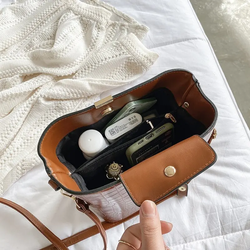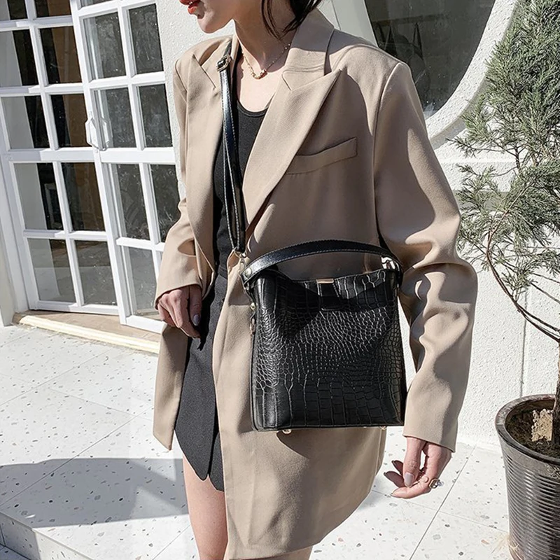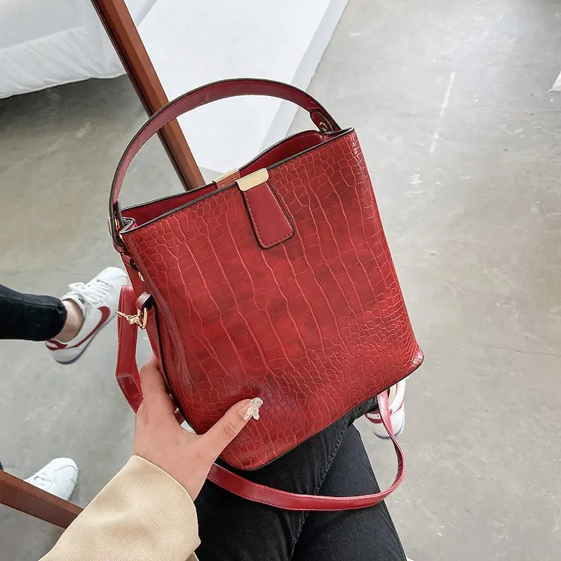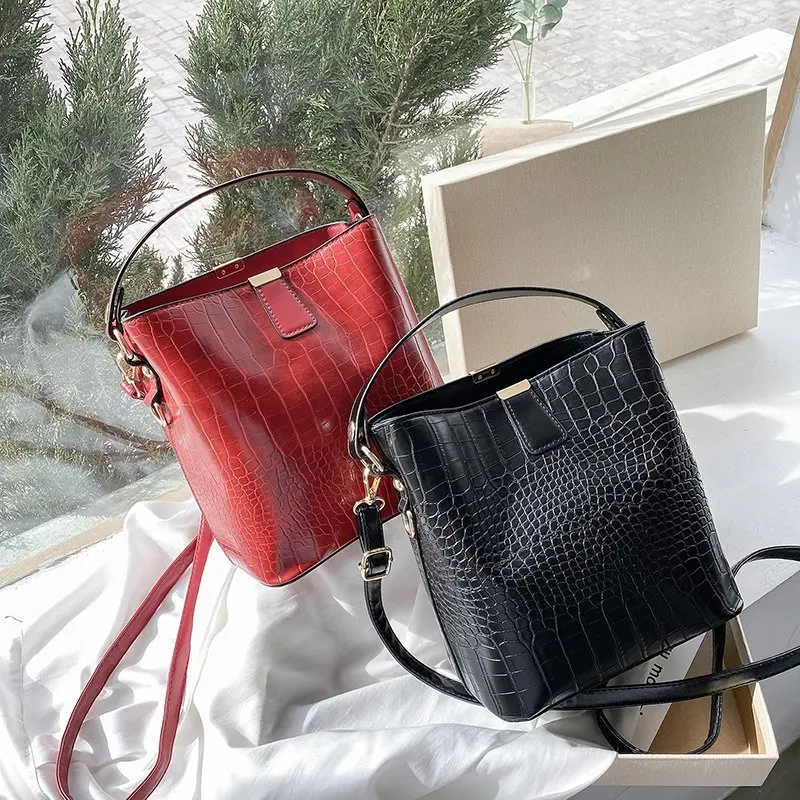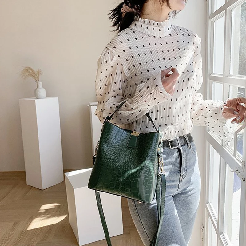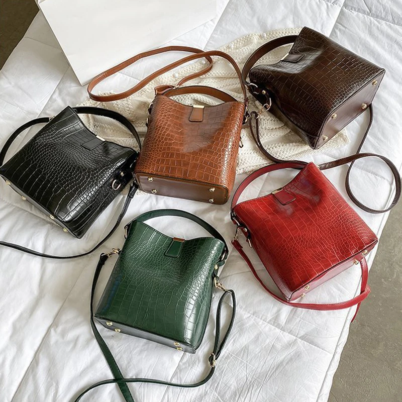Vintage Alligator Leather Handbag Shoulder Crossbody Bags Fashion Female Bucket Bag Large Capacity Women Tote Bag
