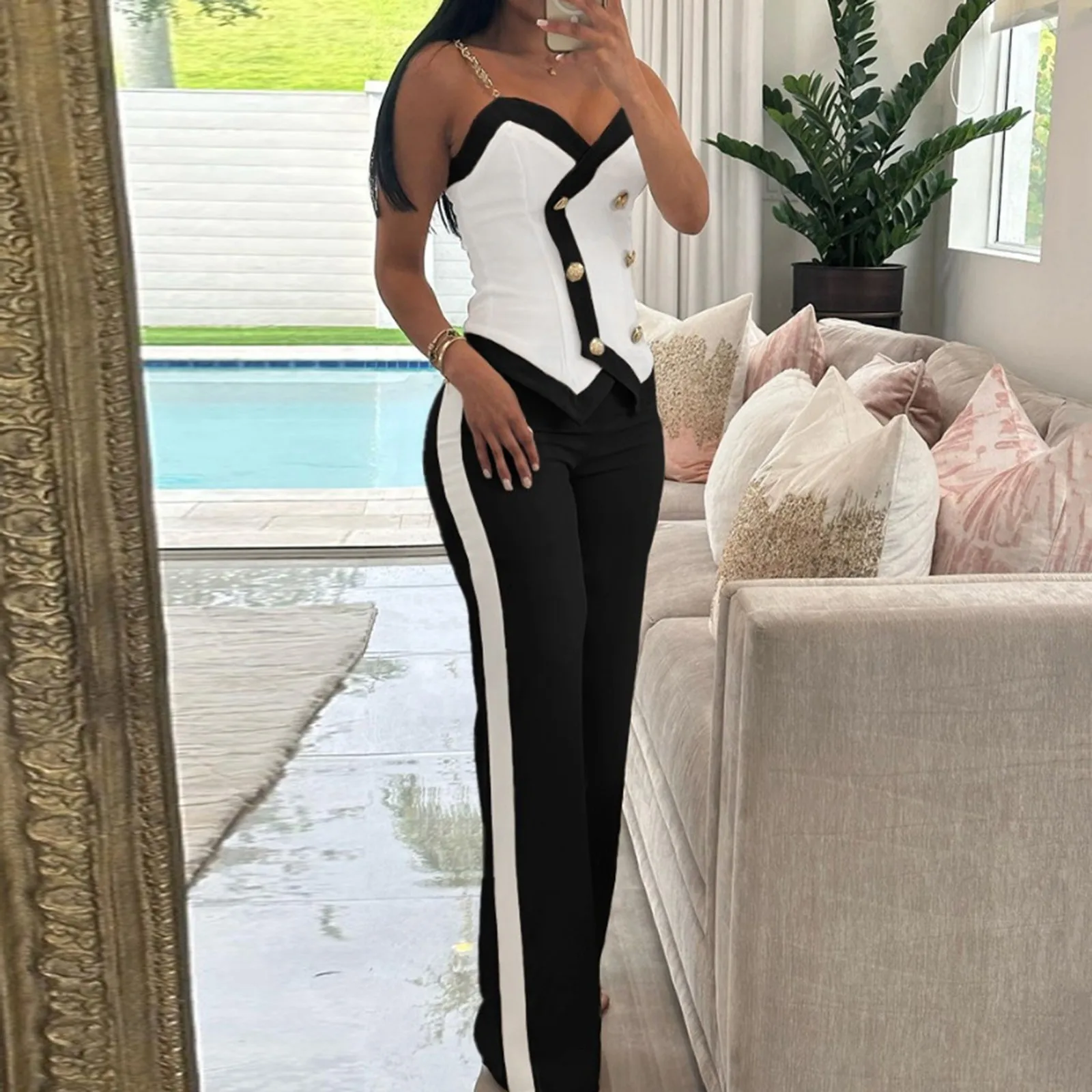 Descubre el Conjunto Elegante de Pantalones y Top, la opción perfecta para el verano y cualquier ocasión. Confección de alta calidad en materiales de mezcla de algodón. Diseño elegante y cómodo, ideal para el uso diario. Incluye un top de tirantes y pantalones de pierna ancha, perfectos para combinar. Disponible en múltiples tallas para un ajuste perfecto. Fácil de cuidar y duradero, solo lava con agua fría. Este conjunto es ideal para brindar comodidad y estilo en tus días de primavera y verano.