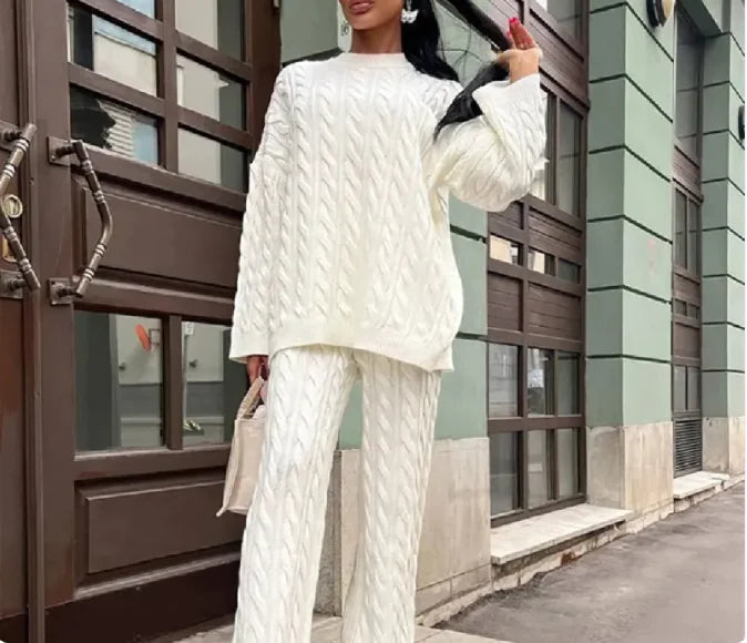 Sweater Pullover Plus Knitted Wide-legged Pants Two-piece Set